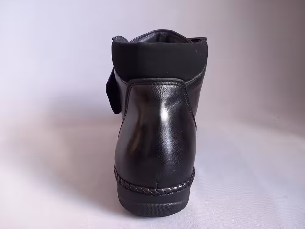 Botki Axel model 1726 w kolorze czarnym. Obuwie o cechach zdrowotnych i profilaktycznych. Odpowiednie na stopy z haluksami, place młotkowate lub inne zwyrodnienia stawów. Tęgość H sprawdzi się na szersze stopy. Podeszwa grubsza amortyzuje i chroni przed mikrourazami. Ocieplenie wnętrze idealne na zimową porę. Profilowana wyjmowana wkładka umożliwia zastosowanie swoich indywidualnych wkładek ortopedycznych.
