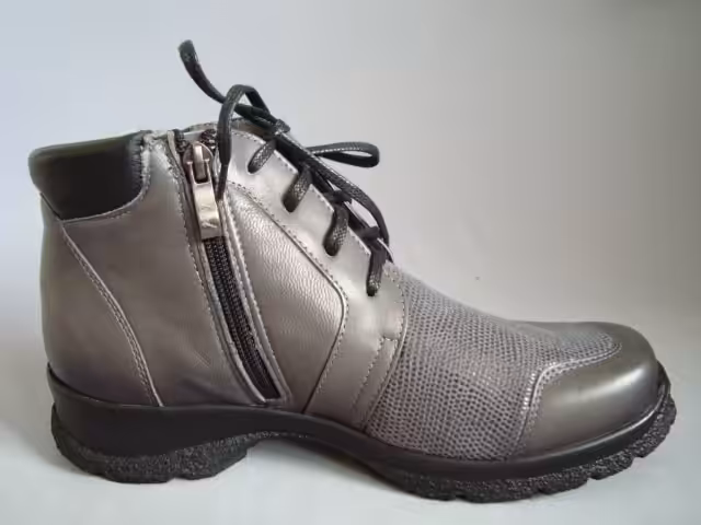 Polska marka Axel comfort produkuje obuwie z najwyższej jakości skór naturalnych. Jest to gwarancja najwyższej jakości. Trzewik-botek posiada wiele zalet. Wizualnie bardzo atrakcyjny, oryginalne połączenie naturalnej skóry licowej z wstawką streczową haluksową o oryginalnym motywie. Przede wszystkim jest praktyczny i funkcjonalny a przykładem jest zapinanie na zamek. Sznurówkami można odpowiednio dopasować do potrzeb stopy, a poza tym sznurowadła wiodą prym w  bieżących trendach.