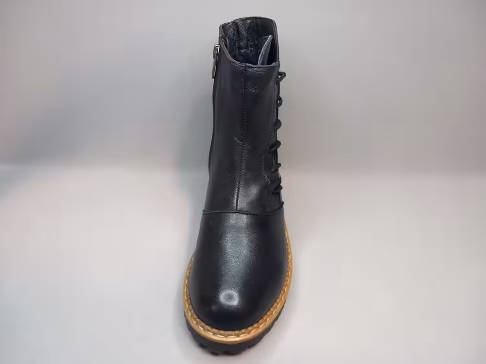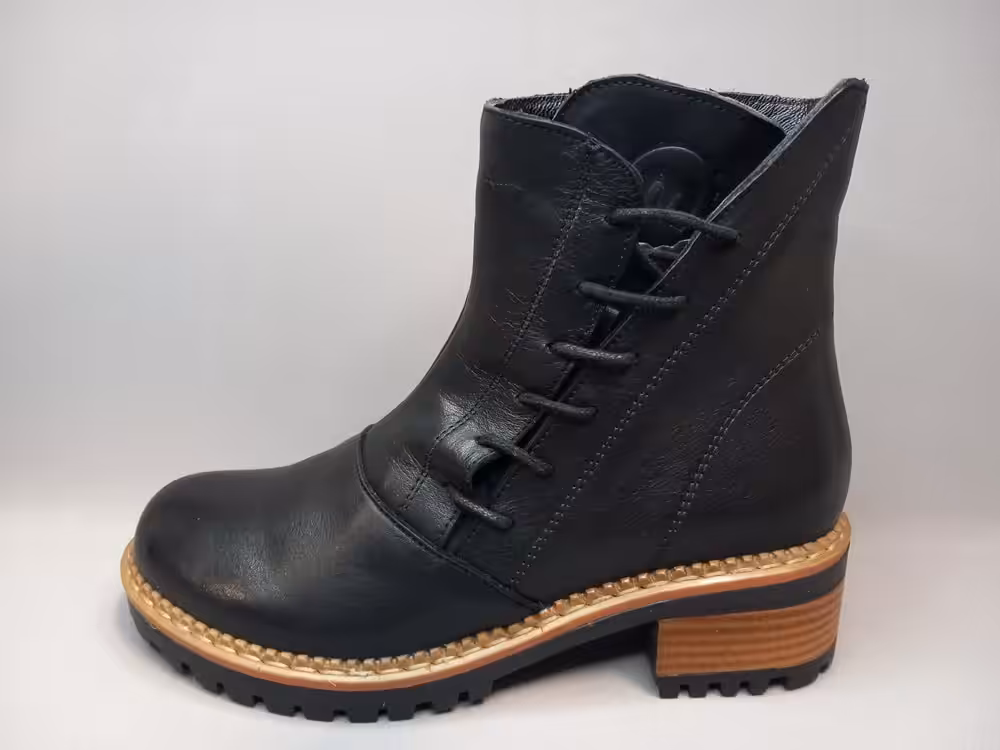 Botki damskie Manitu 960341 klasyczne botki na antypoślizgowej podeszwie. Wiązanie z boku cholewki dodaje charakteru i umożliwia swobodną regulację tęgości w kostce. Wykonane ze skóry naturalnej licowej w kolorze czarnym. Ocieplenie to delikatny i miły w dotyku polar. Modna podeszwa sprawdzi się do wielu stylizacji. Świetnie będą pasować do jeansów lub grubych rajstop i dzianinowej sukienki. Podeszwa dobrze amortyzuje i chroni przed zimnem.