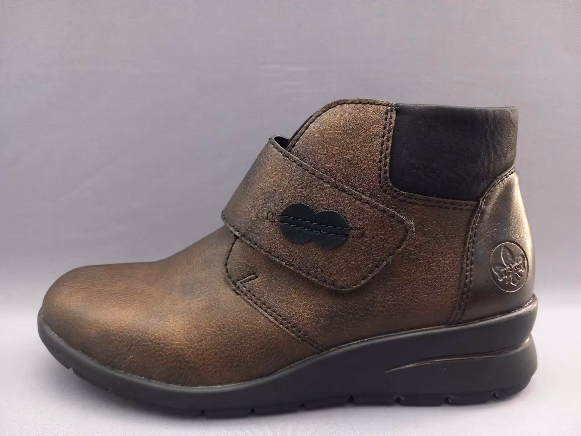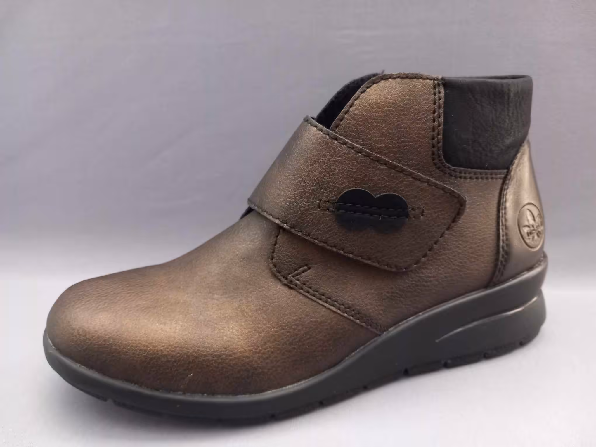 Wygodne i komfortowe botki damskie rieker L4884-90 wykonane z naturalnej skóry licowej. Ciekawy kolor brązowy, stare złoto ładnie prezentuje się do jesiennych stylizacji. Dzięki ocieplanemu wnętrzu sprawdzą się również na sezon zimowy. Tęgość G standardowa odpowiadająca na stopy z małym haluksem. Wkładki profilowane miękkie typu memosoft, które w łatwy sposób można zamienić na inne lub swoje ortopedyczne. Zapinane na rzep który ułatwia zakładanie i dopasowanie do szerokości stopy. Grubsza podeszwa amortyzuje i chroni przed nierównościami. Nosek delikatnie zaokrąglony przez co palce mają więcej miejsca i nie są ściśnięte. Regularne czyszczenie i dbanie o buty przedłuża ich ładny wygląd i czas użytkowania. Dostępne od rozmiaru 36 do 42. Zapraszamy do śledzenia naszej oferty z wygodnymi i komfortowymi butami.
