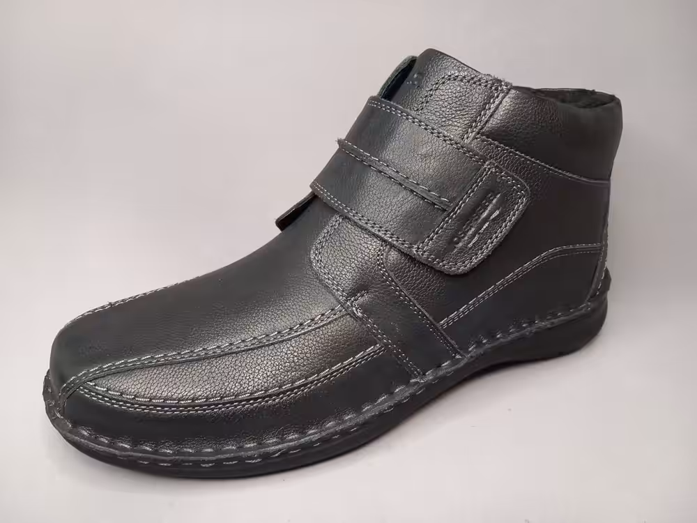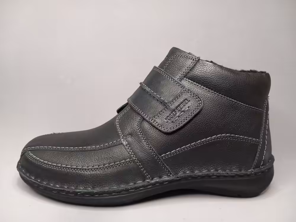 Botki męskie Josef Seibel 44995PL707 to wygodne i klasyczne obuwie zimowe dla panów szukających wygody i komfortu. Skórzana cholewka łatwa w utrzymaniu czystości.  Wnętrze ocieplane dobrze utrzymuje temperaturę i chroni przed zimnem. Podeszwy lekkie i elastyczne bardzo komfortowe w codziennym użytkowaniu. Zapięcie na rzep maksymalnie ułatwia zakładanie. Czarny klasyczny kolor uniwersalny i pasujący do wielu stylizacji. Marka Josef Seibel jest znana wśród naszych klientów i ceniona za wzornictwo, jakość i wygodę. Tęgość H dedykowana na szerszą stopę, noski szerokie przez co palce mają więcej miejsca i luzu. Idealnie sprawdzą się w okresie zimowym do pracy, na spacery lub wyjazdy. Do czyszczenia polecamy dedykowane pianki i pasty.  Sprawdź naszą kolekcję i wybierz idealną parę dla siebie. W ofercie znajdziesz również półbuty na rzep w kolorze brązowym z tej samej serii.