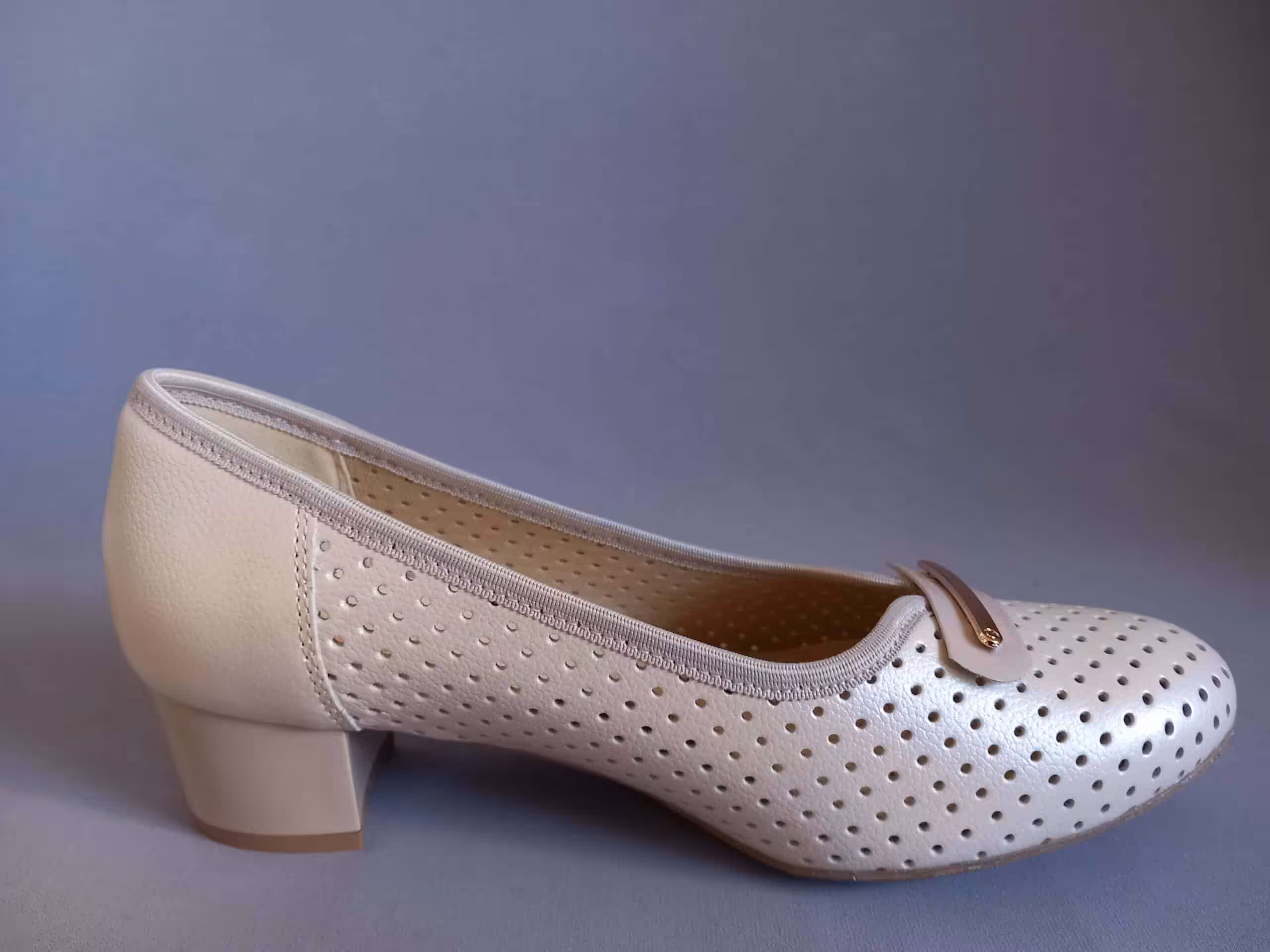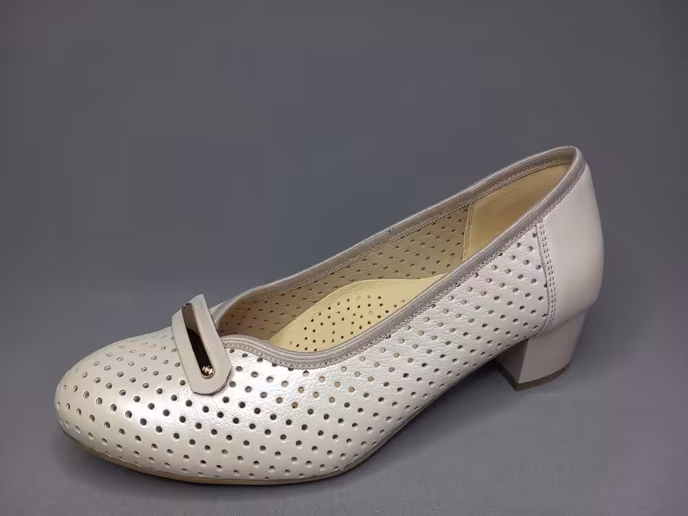 Czółenka Lampert 07220104xf41l87k to elegancki fason butów który sprawdzi się do pracy lub rodzinne imprezy. Kolor ekri, perłowy wpasowuje się w trendy i do wielu stylizacji.Tęgość H dedykowana na szersze stopy i stopy z haluksami. Skóra naturalna wysokiej jakości dopasuje się do kształtu i zapewni komfort i wygodę podczas użytkowania. Stabilny obcas średniej wysokości. Cholewka ażurowa przewiewna zapewnia odpowiednią cyrkulację powietrza.