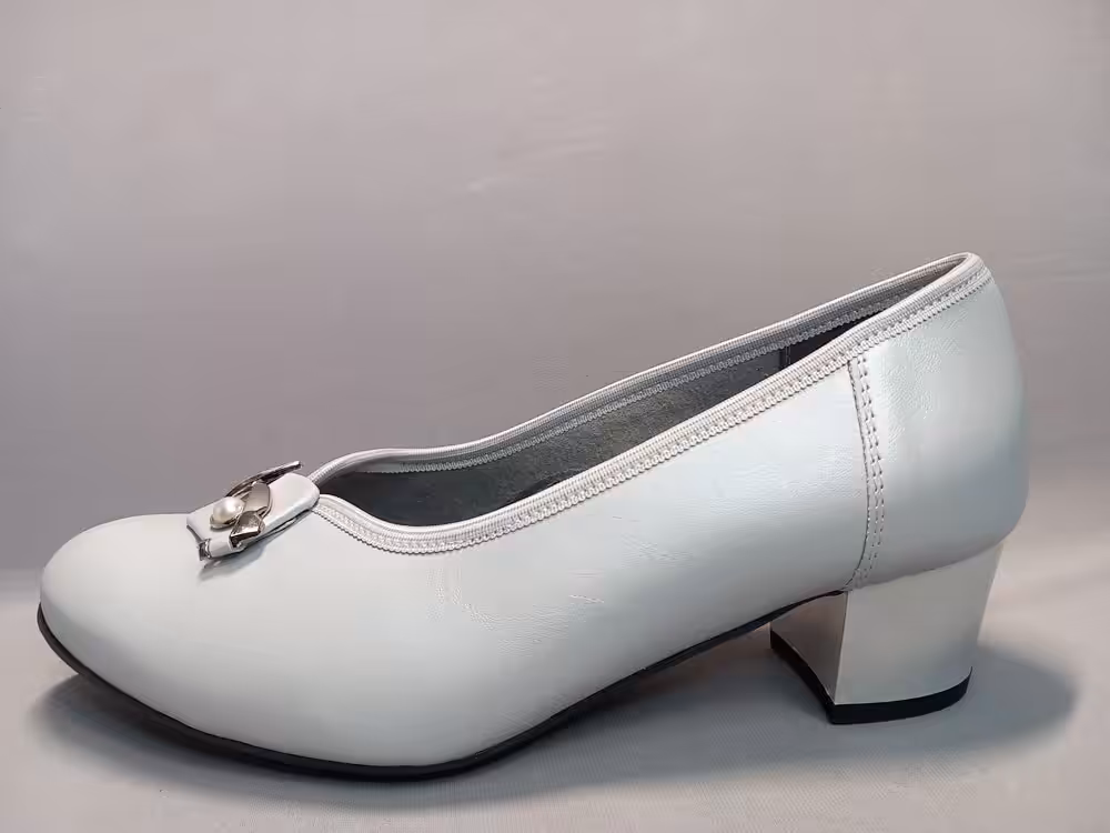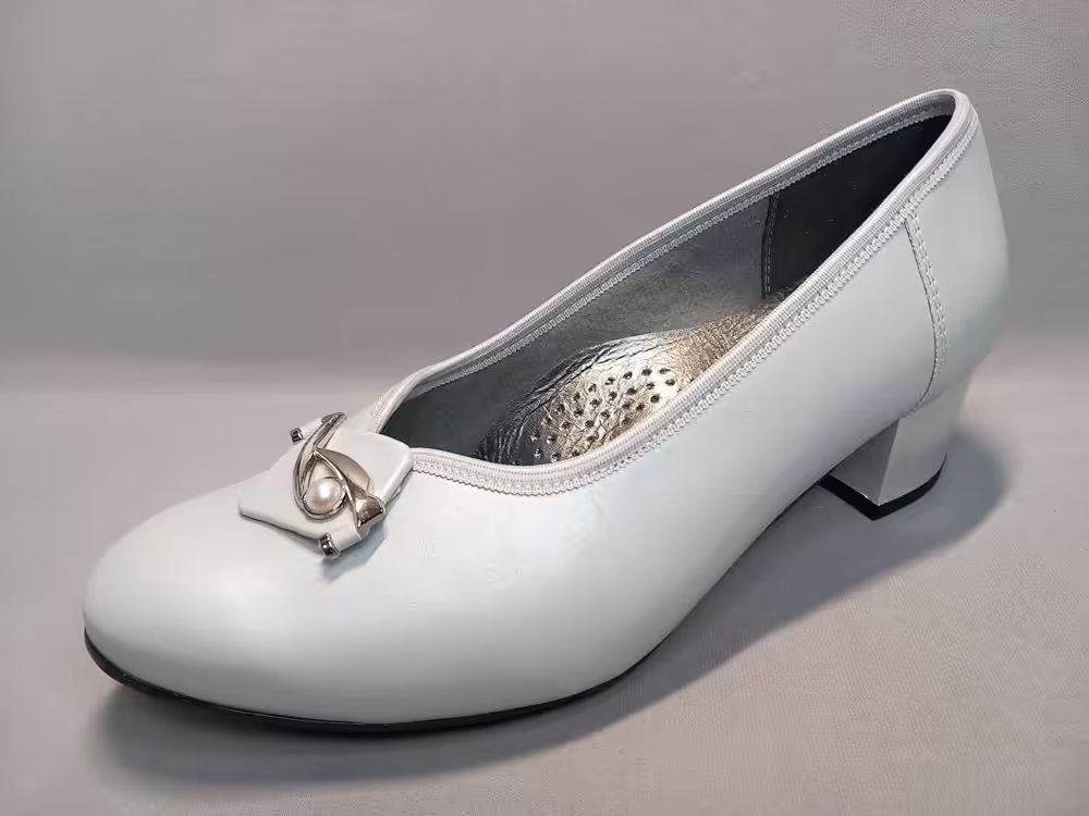 Czółenka Lampert 34720104 tęgość-H to propozycja dla kobiet szukających eleganckich butów o większej szerokości. Miękka naturalna skóra licowa ładnie układa się do stopy. Nosek zaokrąglony przez co palce mają więcej miejsca. Piękny popielaty kolor z delikatną perłową poświatą sprawdzi się idealnie na większe wyjścia. Stabilny obcas o średniej wysokości 4,5cm typu klocek. Model sprawdzi się do sukienek w różnych kolorach.