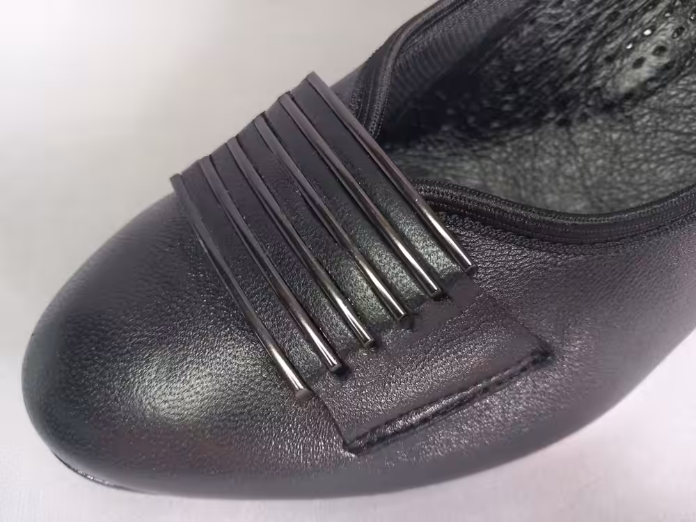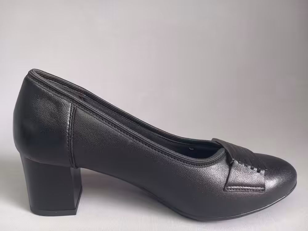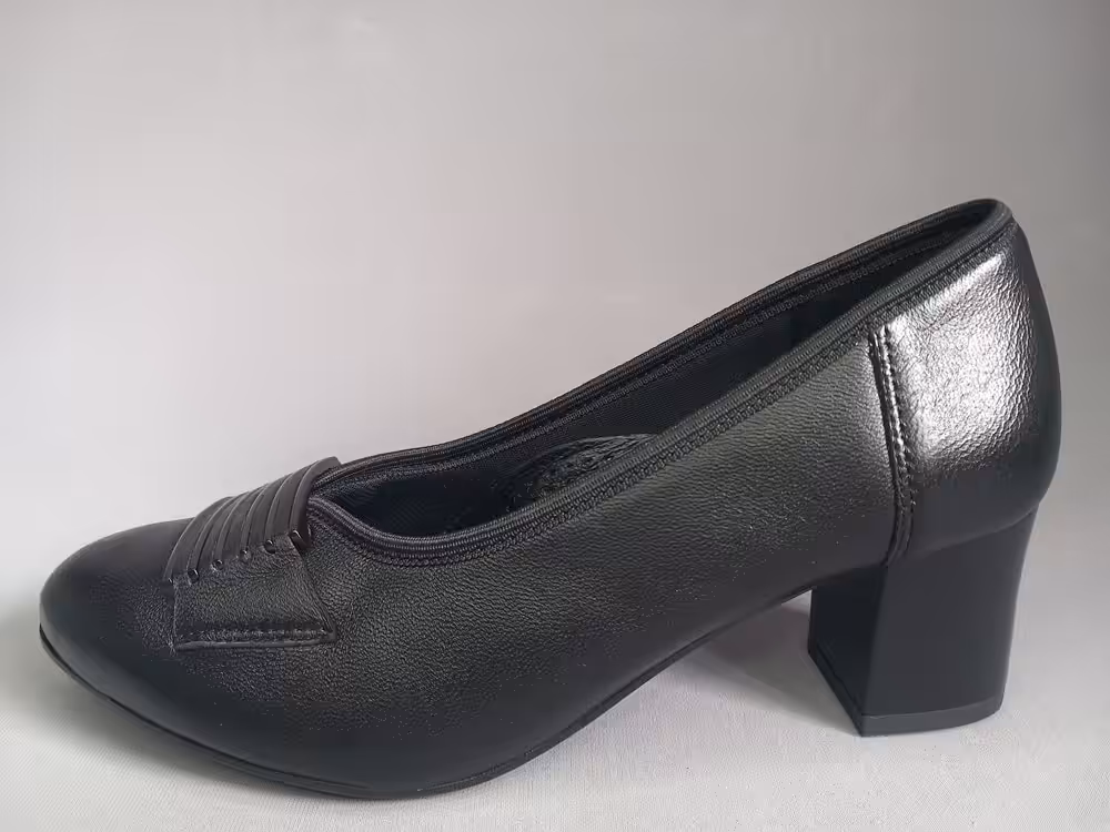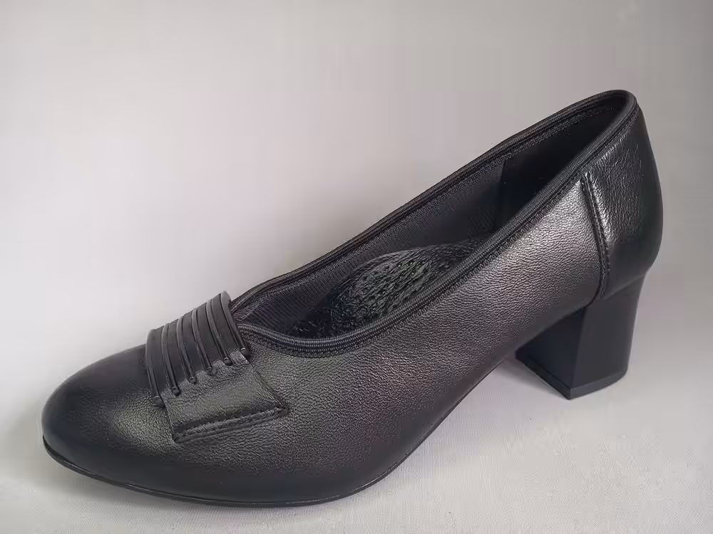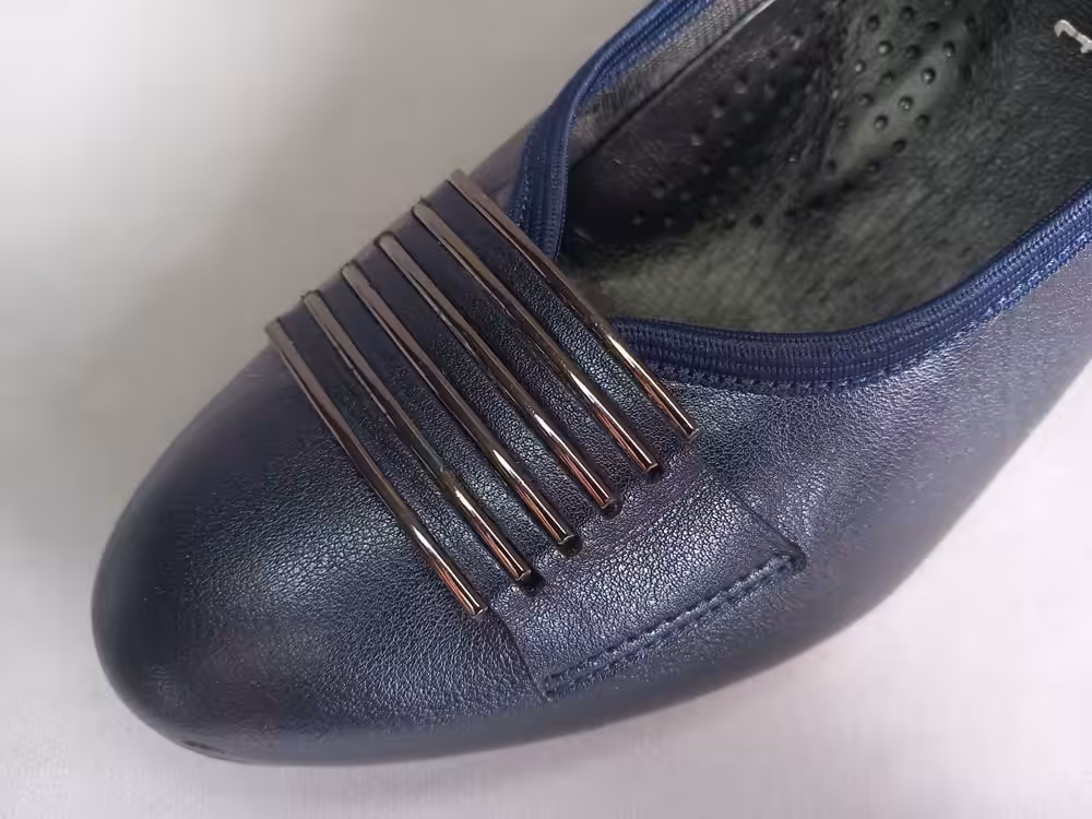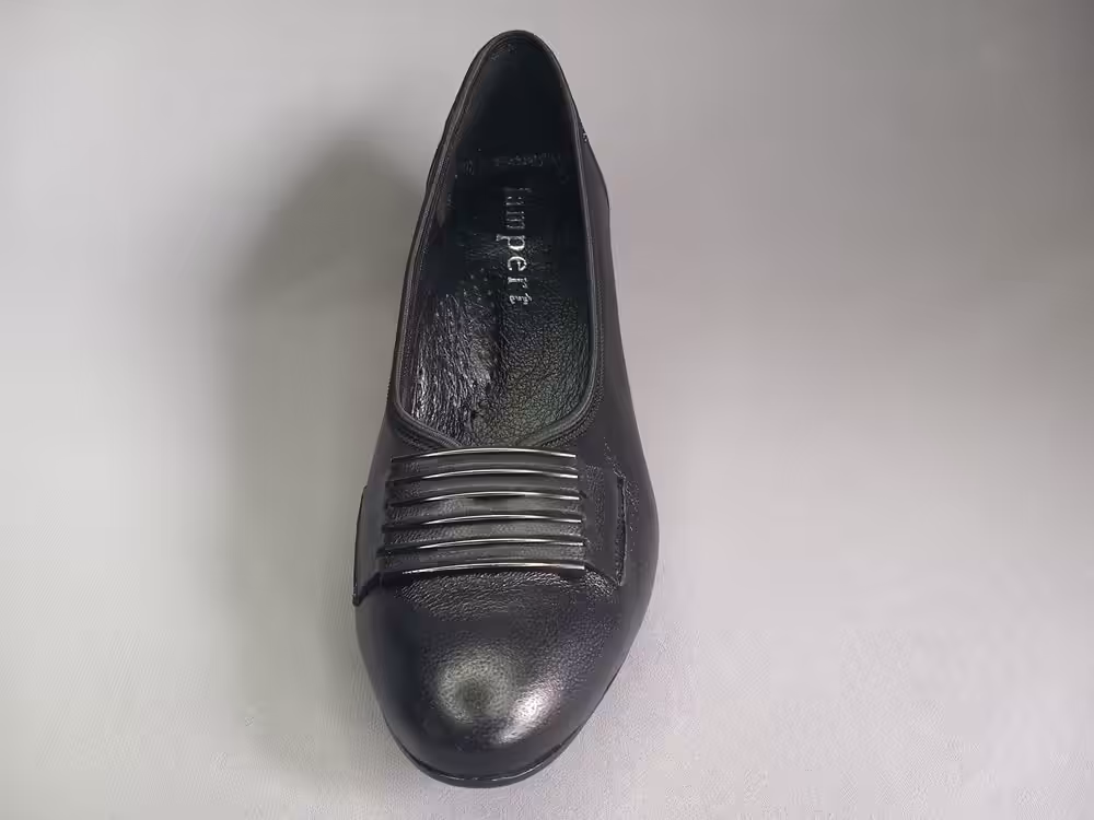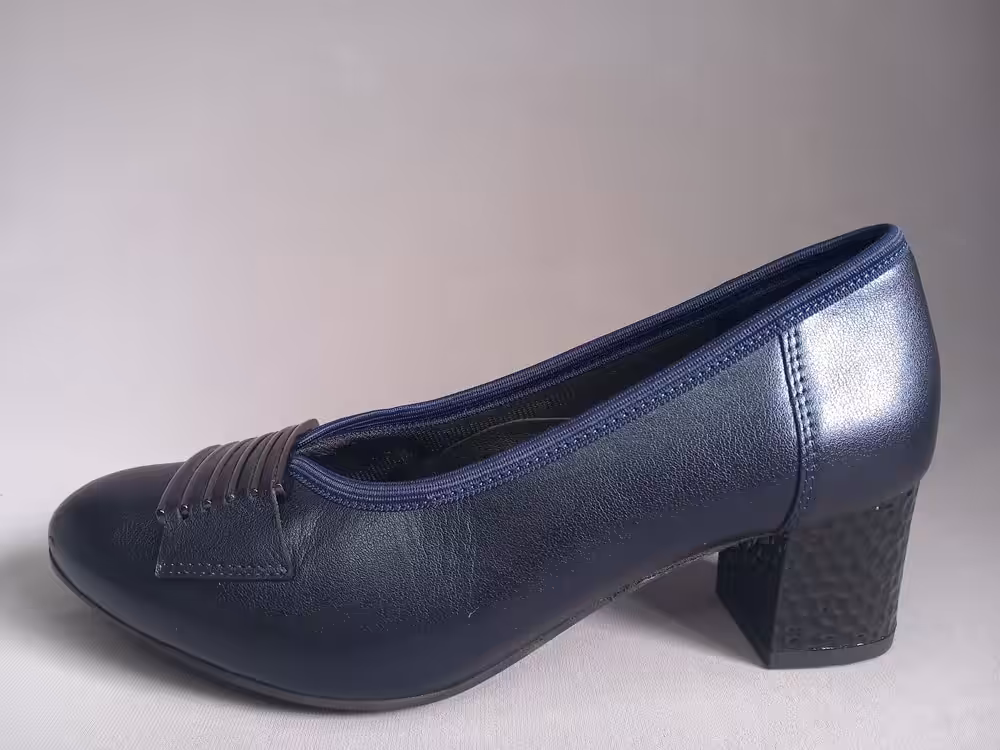 Obuwie zostało wykonane z miękkiej naturalnej skóry licowej która ładnie układa się do stopy. Wnętrze to delikatny materiał oddychający, wkładka skórzana profilowana. Podeszwa chroni przed mikro urazami i zapewnia komfort podczas użytkowania, antypoślizgowa. Obcas stabilny w kolorze granatowym delikatnie tłoczony z ozdobną fakturą. W kolorze czarnym malowany bez zdobień. Nosek delikatnie zaokrąglony tęgość G 1/2 tak aby zapewnić komfort i wygodę podczas użytkowania. Model sprawdzi się również na stopy z małymi haluksami. Tasiemka która jest wykończeniem cholewki wysmukla i ładnie przylega do stopy przez co buty prezentują się a nogach lepiej. Ozdoba w postaci grafitowych pasków przyciąga uwagę i dodaje uroku. Klasyczny i ponadczasowy fason sprawdzi się na wiele okazji. Zawsze w swoje szafie warto mieć jedną elegancką parę butów, dlatego sprawdź naszą ofertę.