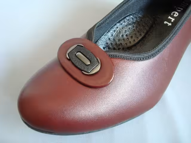 Czółenka polskiej marki Lampert, model 61320104 Sprawdzą się w każdej kobiecej garderobie, idealne na wyjścia lub do pracy dla wymagających pań. W ofercie rozmiary od 36 do 41. Cholewka specjalnie zaprojektowana tak aby ukryć haluksy lub palce młotkowate. Obuwie wykonane z największą starannością z wysokiej jakości skóry naturalnej licowej. Tęgość H przez co buty sprawdzą się również na nieco szerszą stopę. Podeszwa elastyczna, wkładki piankowe profilowane wykończone skórą naturalną, podnoszą komfort użytkowania i odciążają zmęczone stopy. Delikatna ozdoba dodaje charakteru. Obcas 4 cm stabilny i dobrze wyważony. Tasiemka przy wykończeniu cholewki otula stopę przez co czółenka bardzo ładnie się prezentują.