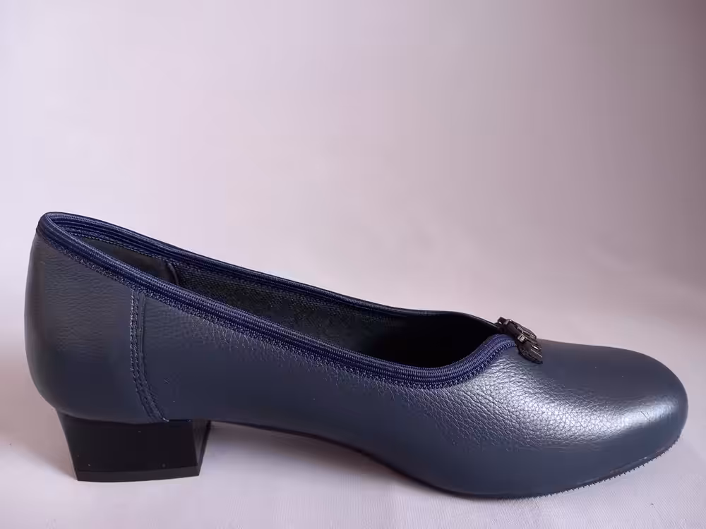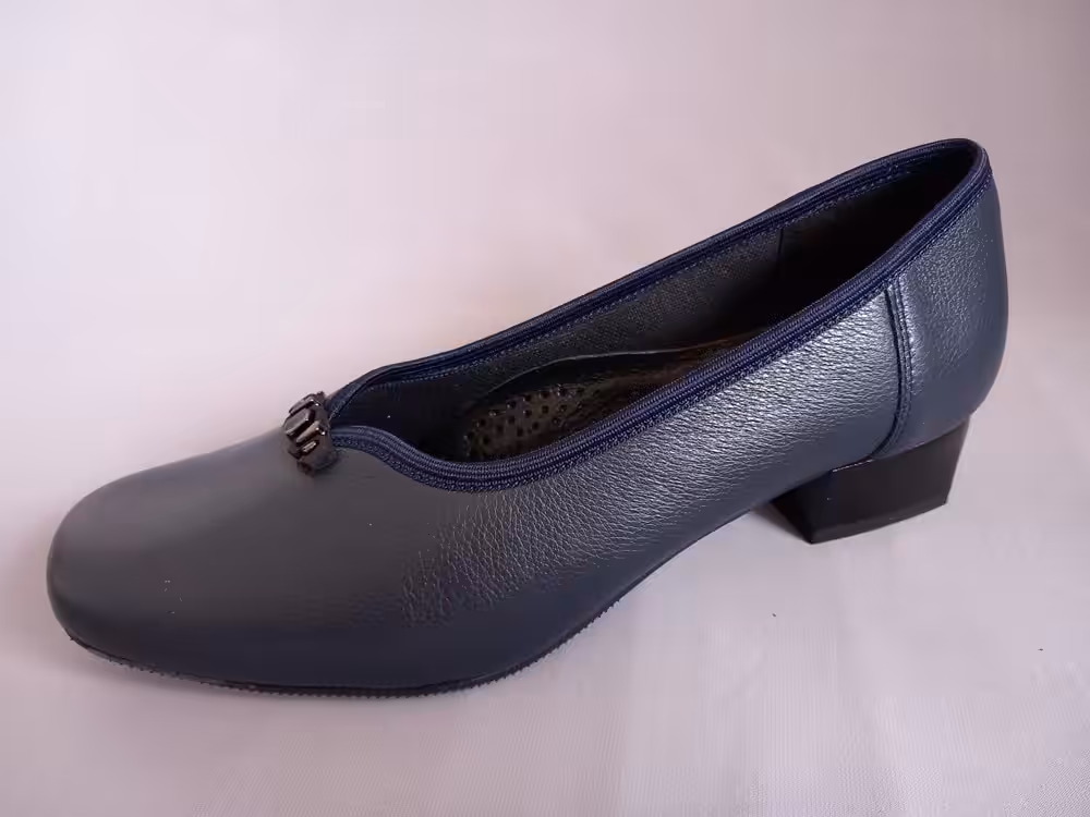 Czółenka polskiej marki Lampert, model 8452923RC20K. Sprawdzą się w każdej kobiecej garderobie, idealne na wyjścia lub do pracy dla wymagających pań. W ofercie rozmiary od 34 do 43. Cholewka specjalnie zaprojektowana tak aby ukryć haluksy lub palce młotkowate. Obuwie wykonane z największą starannością z wysokiej jakości skóry naturalnej licowej. Tęgość H przez co buty sprawdzą się również na nieco szerszą stopę. Podeszwa elastyczna, wkładki piankowe profilowane wykończone skórą naturalną, podnoszą komfort użytkowania i odciążają zmęczone stopy. Kolor granatowy bardzo modny i ponadczasowy. Delikatna ozdoba dodaje charakteru. Obcas 3,5 cm stabilny i dobrze wyważony. Tasiemka przy wykończeniu cholewki otula stopę przez co czółenka bardzo ładnie się prezentują.