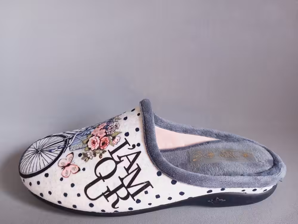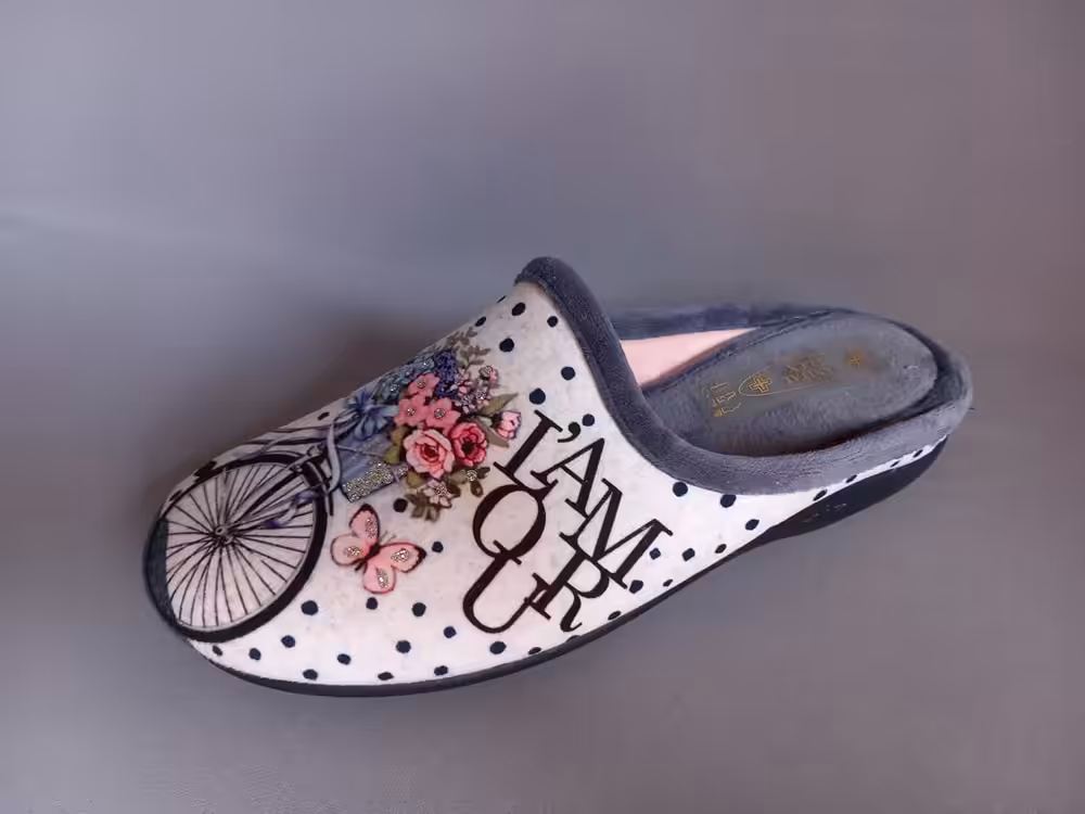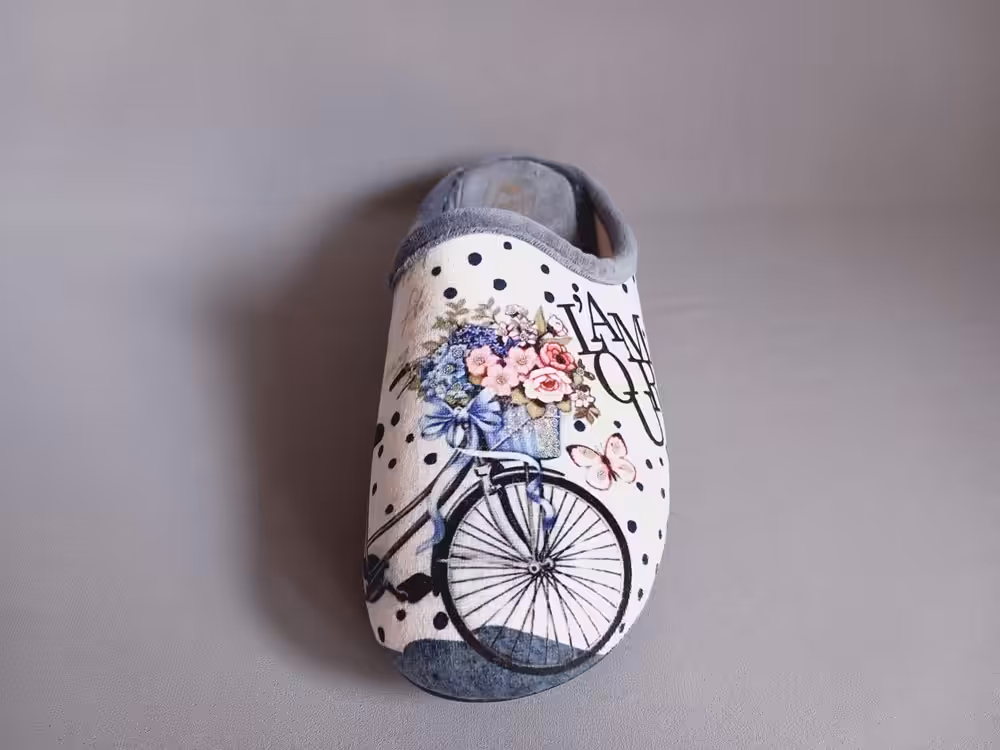 Wygodne kapcie Sanital Flex Z27667 wpadają w oko i sprawdzą się na wymagające stopy. Odpowiednie dla osób z haluksami i palcami młotkowatymi. W naszej ofercie można znaleźć rożne motywy na cholewkach do bardzo kolorowych i wesołych po klasyczne i neutralne wzornictwo. Modele świetnie sprawdzą się na świąteczne prezenty. Polecamy rozmiarówka od 35 do 43. Cholewka z uroczym motywem roweru i kwiatów. Kobiece i delikatne z zarazem super wygodne.