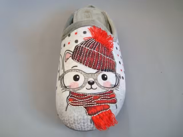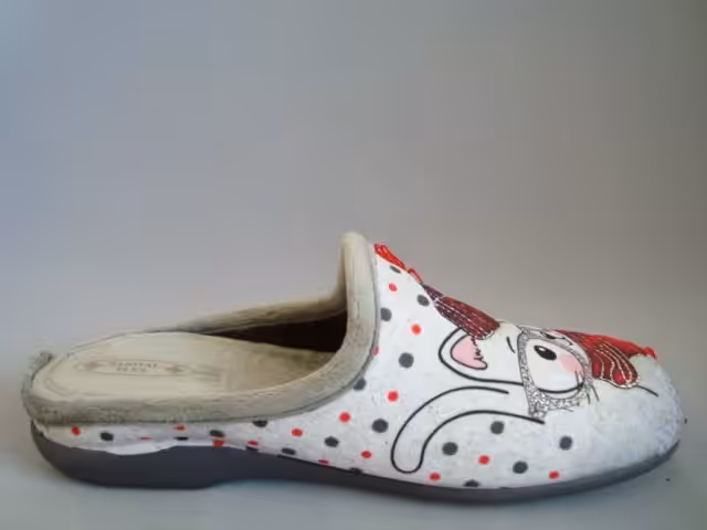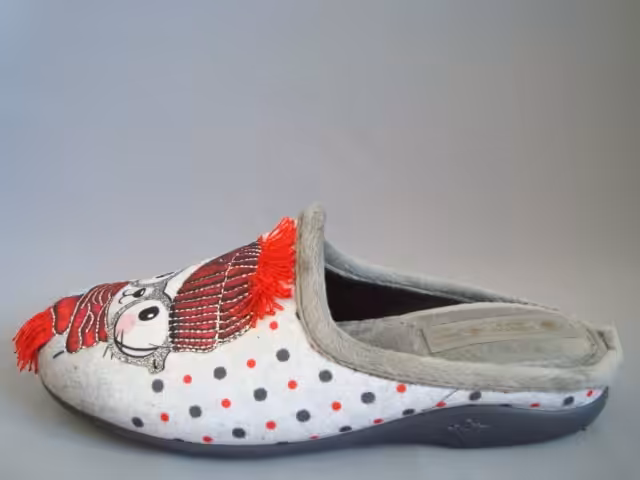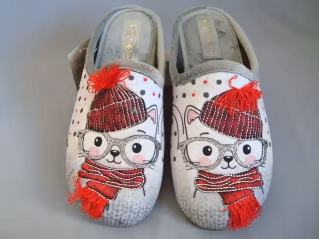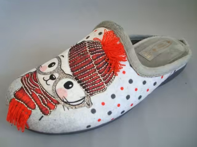Kapcie domowe Sanital Flex model Z23343. Wykonane z miękkiego i przyjemnego materiału tekstylnego polarowego.  Podeszwy gumowe elastyczne, nie rysujące powierzchni, bardzo stabilne i antypoślizgowe.  Dostępne w wielu kolorach z motywami zwierzęcymi. Urocze i bardzo wygodne tęgość G delikatnie szersza na G1/2. Wkładka miękka piankowa pokryta materiałem tekstylnym zapewnia komfort stóp. Modele kapci domowych marki Sanital Flex będą dobrym wyborem na prezent urodzinowy lub z innej okazji. Kapcie zachęcają  swoim wyglądem i wygodą. Odpowiednie dla osób z wrażliwymi stopami, haluksami, palcami młotkowatymi, lub zwyrodnieniami.