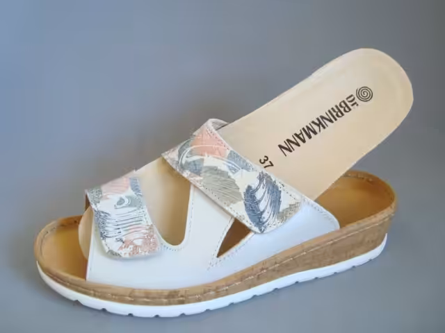 Klapki profilaktyczne DR Brinkmann model 700196-03 Dostępne w kilku kolorach. Wykonane z najwyższej jakości skóry naturalnej nubukowej i licowej. Cholewka to dwa regulowane paski które pozwalają na idealne dopasowanie do stopy. Podeszwa grubsza chroni przed mikro urazami i podnosi komfort użytkowania.Wkładki profilowane z możliwością wyjęcia i zastosowania swoich indywidualnych wkładek ortopedycznych. Ponadto wkładki są bardzo dobrze wyprofilowane sprawdzą się do chodzenia w domu, w pracy lub na upalne dni do codziennych stylizacji. Kolorystyka stonowana z ciekawym wzorem.