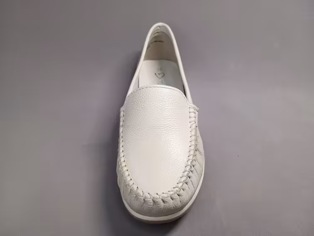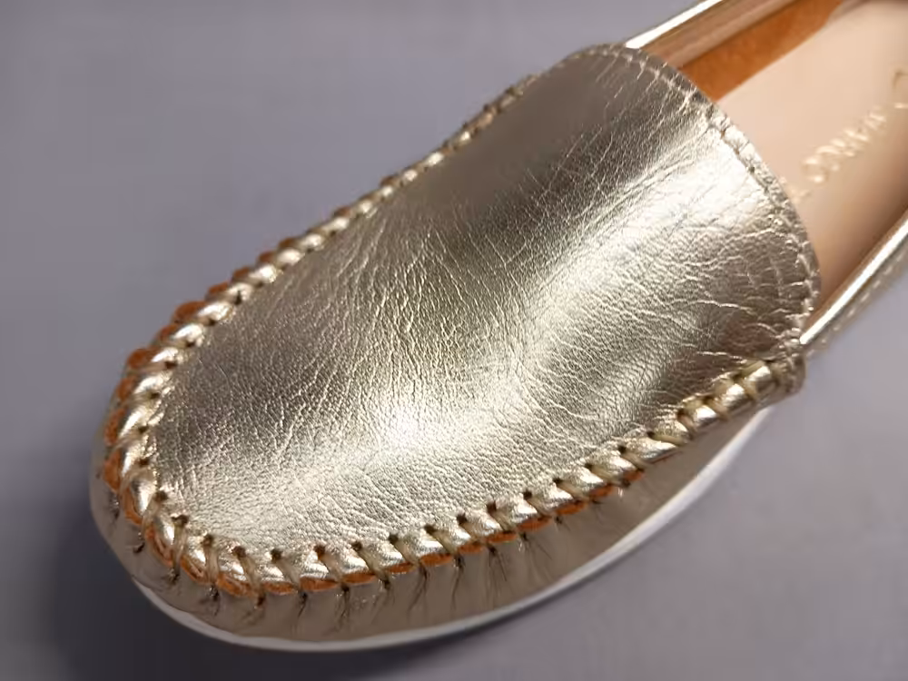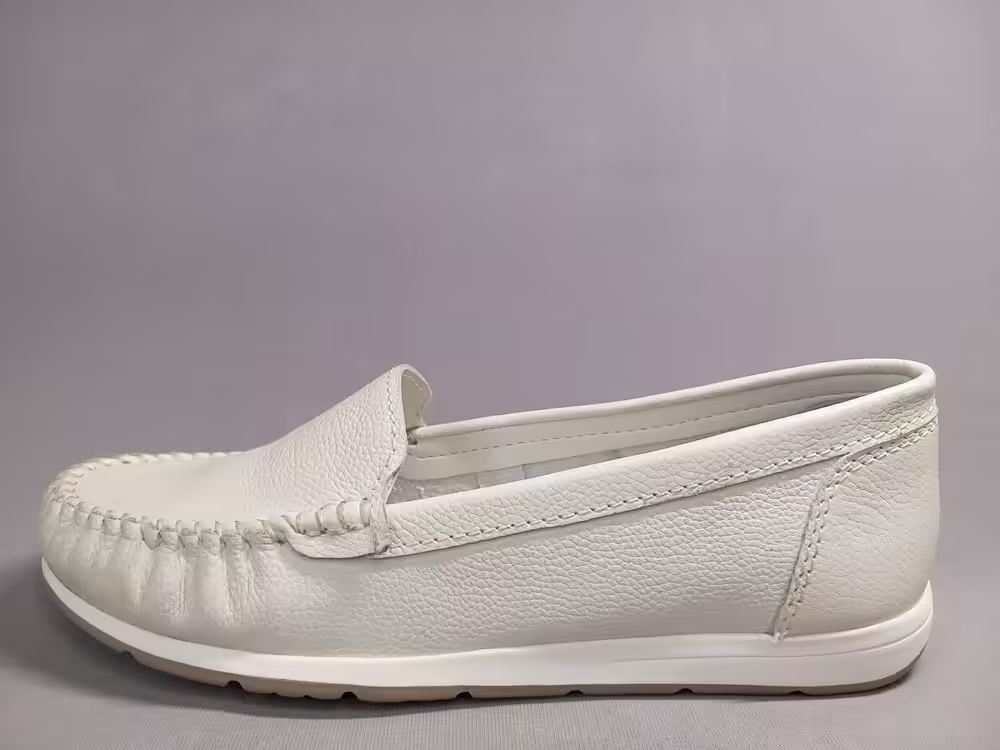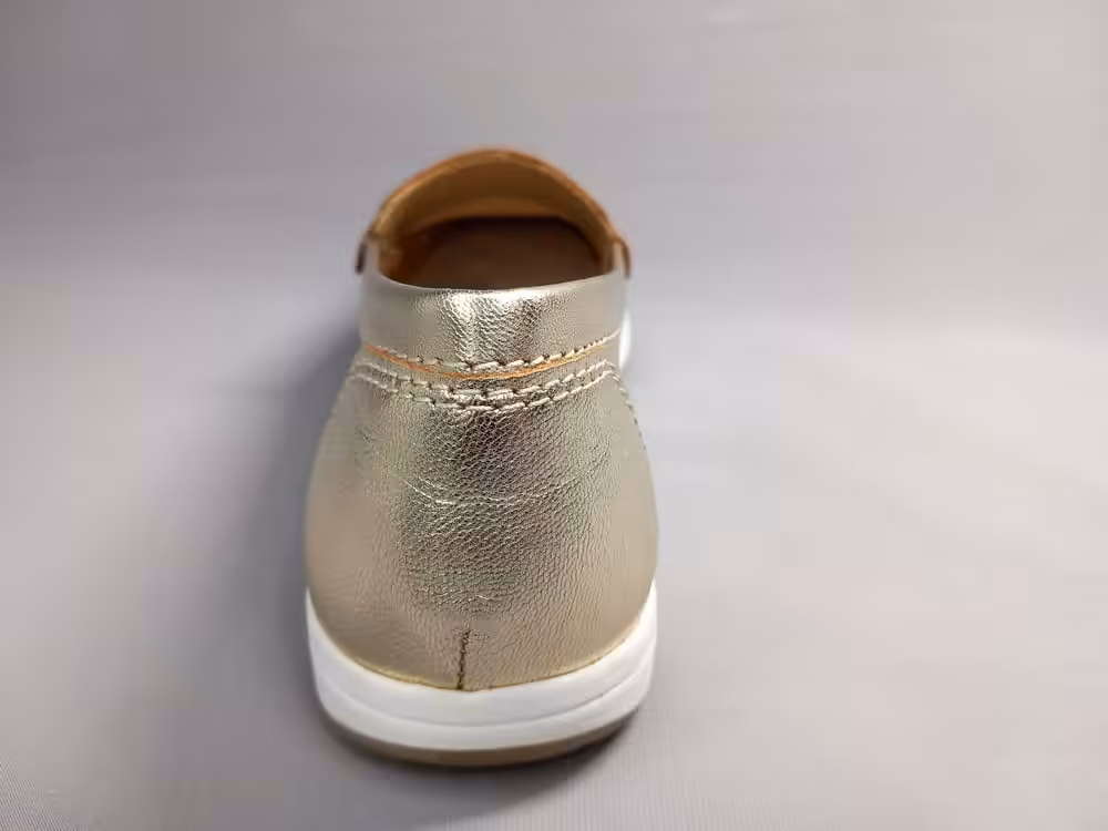 Obuwie wykonane z miękkiej skóry naturalnej, w kolorze złamanej bieli ( jasny popiel) i pięknym złotym odcieniu. Wygodne elastyczne podeszwy wykonane z wysokiej jakości tworzywa, chronią przed mikrourazami. Wnętrze wykonane również ze skóry naturalnej. Miękkie wkładki podnoszą komfort użytkowania. Noski zaokrąglone przez co buty są bardziej wygodne. Tęgość G standardowa dedykowana na stopy o średniej budowie. Klasyczne mokasyny warto mieś w swojej szafie, ponieważ będą pasowały do wielu wiosennych a nawet letnich stylizacji.  Łatwe w utrzymaniu czystości wystarczy pianka i bezbarwna pasta. Sprawdź całą naszą kolekcję i wybierz idealną parę dla siebie. Prezentowany model dostępny w rozmiarach od 36 do 40.