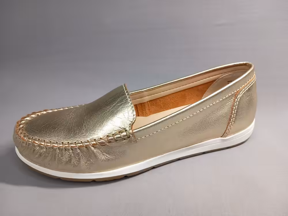 Mokasyny damskie MarcoTozzi 24600-42  klasyczne skórzane buty idealne do wiosennych stylizacji. Ponadczasowy krój i wygodna podeszwa sprawdzi się w różnych sytuacjach. Dostępne w dwóch kolorach złamana biel (jasny popiel) i złoty. Tęgość G standardowa. Podeszwa elastyczna nie krępuje ruchów i jest lekka. Bardzo ładnie prezentują się na stopach. Odpowiednie na codzień  do pracy i na wycieczki.