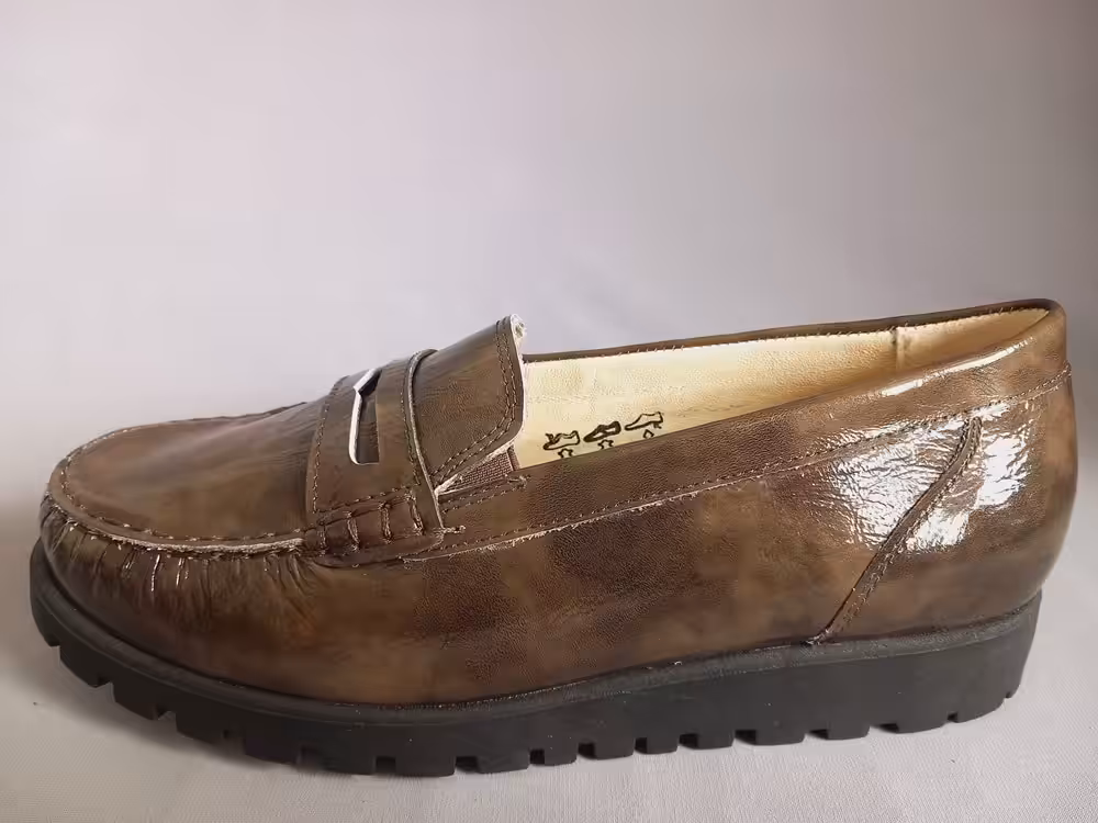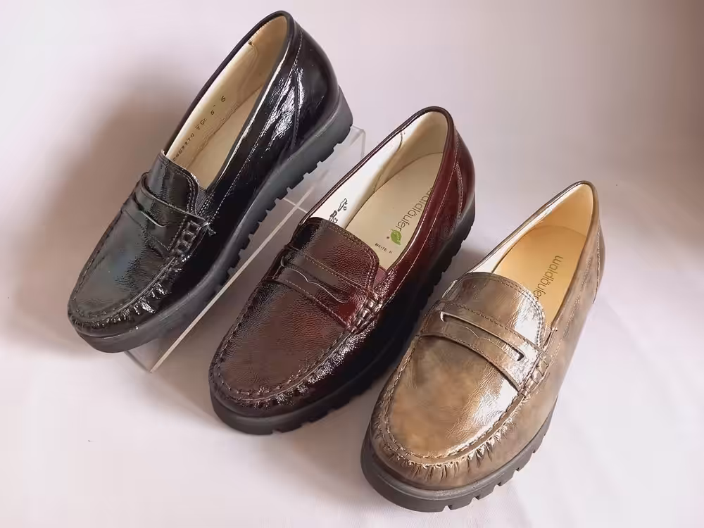 Obuwie wykonane z naturalnej skóry lakierowanej, którą łatwo się czyści i wygląda bardzo atrakcyjnie.  Wkładki profilowane z możliwością wyjęcia, dlatego będą odpowiednie do włożenia swoich indywidualnych zdrowotnych wkładek od ortopedy lub podologa. Tęgość H idealnie sprawdzi się na szerszą wymagającą stopę.  Grubsza podeszwa amortyzuje i chroni przed mikrourazami zapewniając komfort i wygodę.  Dodatkowo mają właściwości antypoślizgowe, dlatego sprawdzą się w różnych warunkach. Wykonane z dbałością o najmniejszy szczegół. Model Hegli posiada na podbiciu gumki, które ułatwiają zakładanie. Fason klasyczny i ponadczasowy sprawdzi się do wielu stylizacji. Dostępne w kliku kolorach i rozmiarach z połówkami do numeru 43.