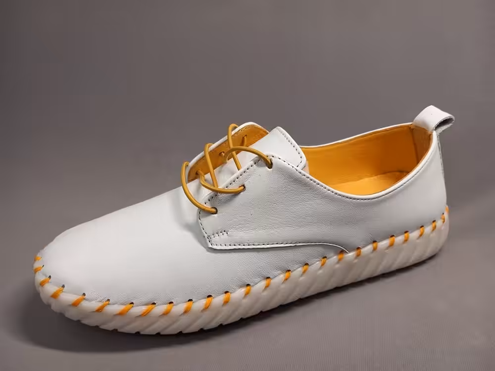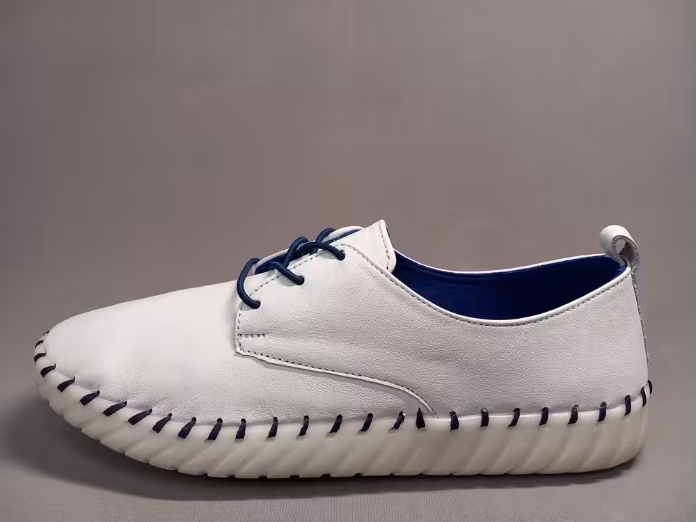 Półbuty damskie Loretta Vitale 911 miękki i elastyczne podeszwy gumowe nie krępują ruchów i świetnie sprawdzają się w codziennych stylizacjach. Dostępne dwa warianty kolorystyczne biały + żółty i biały + granatowy. Modne i ciekawe rozwiązanie, wiązanie to gumki które dopasują się do wysokości podbicia. Sprawdź całą nasza kolekcję z marki Loretta Vitale i wybierz idealną parę dla siebie.