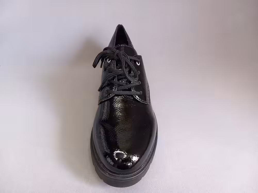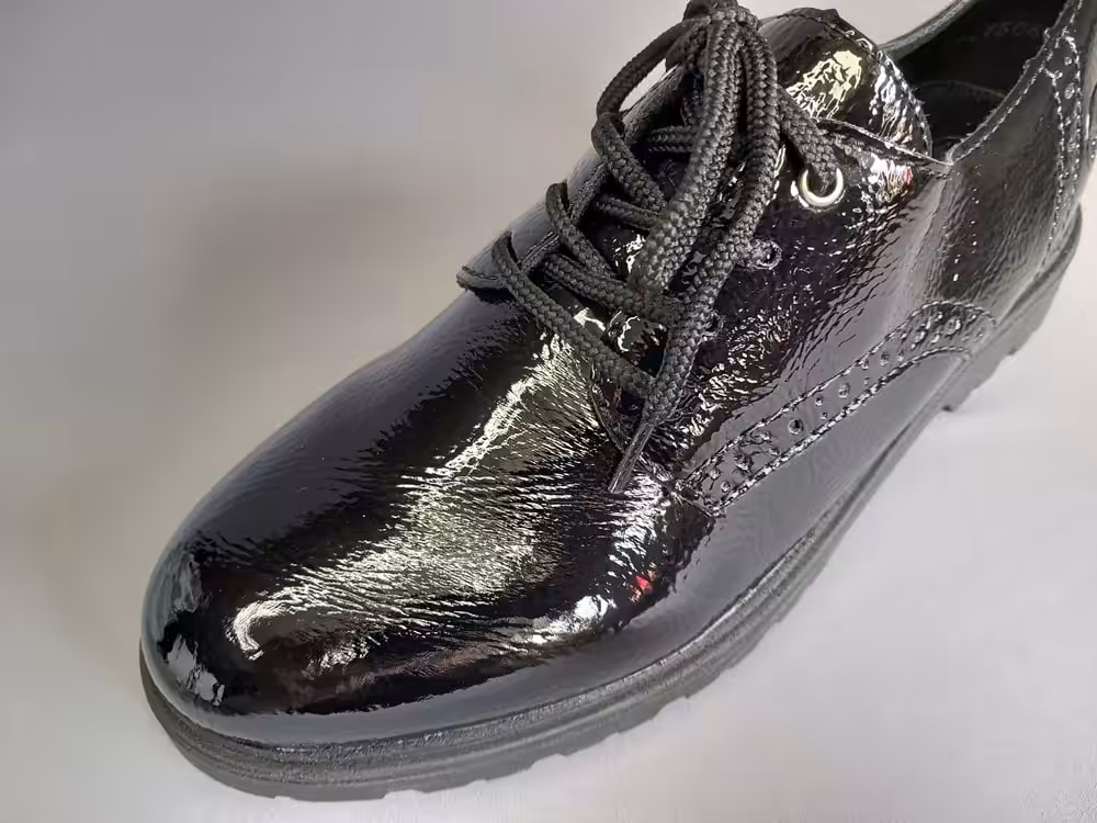 Obuwie zostało wykonane z wysokiej jakości skóry ekologicznej lakierowanej. Wnętrze wyścielone delikatnym welurem które sprawia że buty są bardziej miękkie i cieplejsze. Wkładka skórzana z warstwą pianki odciąży zmęczone stopy. Podeszwa grubsza antypoślizgowa chroni przed mikro urazami. Wiązanie ułatwi zakładanie i dopasowanie do wysokości podbicia. Nosek delikatnie wydłużony i zaokrąglony przez co palce mają więcej miejsca. Tęgość G standardowa ale sprawdzą się również dla osób ze szczupłymi stopami i delikatnym haluksem. Cholewka bez zbędnych szyć łatwiej dopasuje się do kształtu stopy. Klasyczny i ponadczasowy fason idealnie sprawdzi się na sezon jesień-zima. Łatwe w utrzymaniu czystości, świetnie prezentują się na stopach. Lekkie i wygodne podeszwy sprawdzą się na różnym terenie. Sprawdź koniecznie całą naszą ofertę i wybierz idealną parę dla siebie.