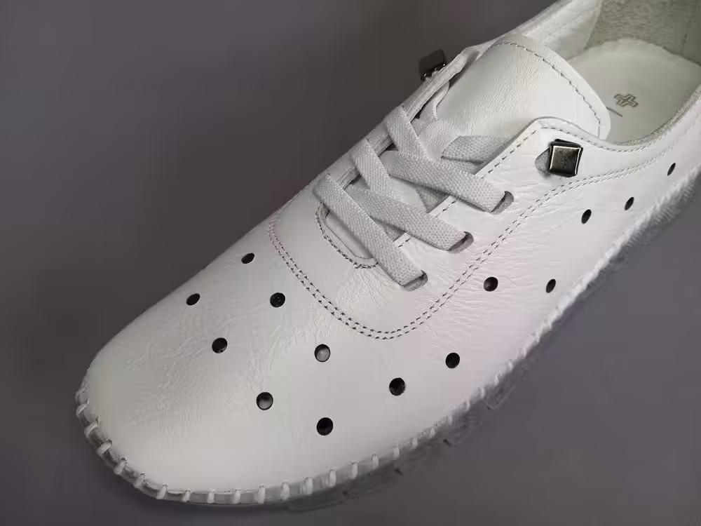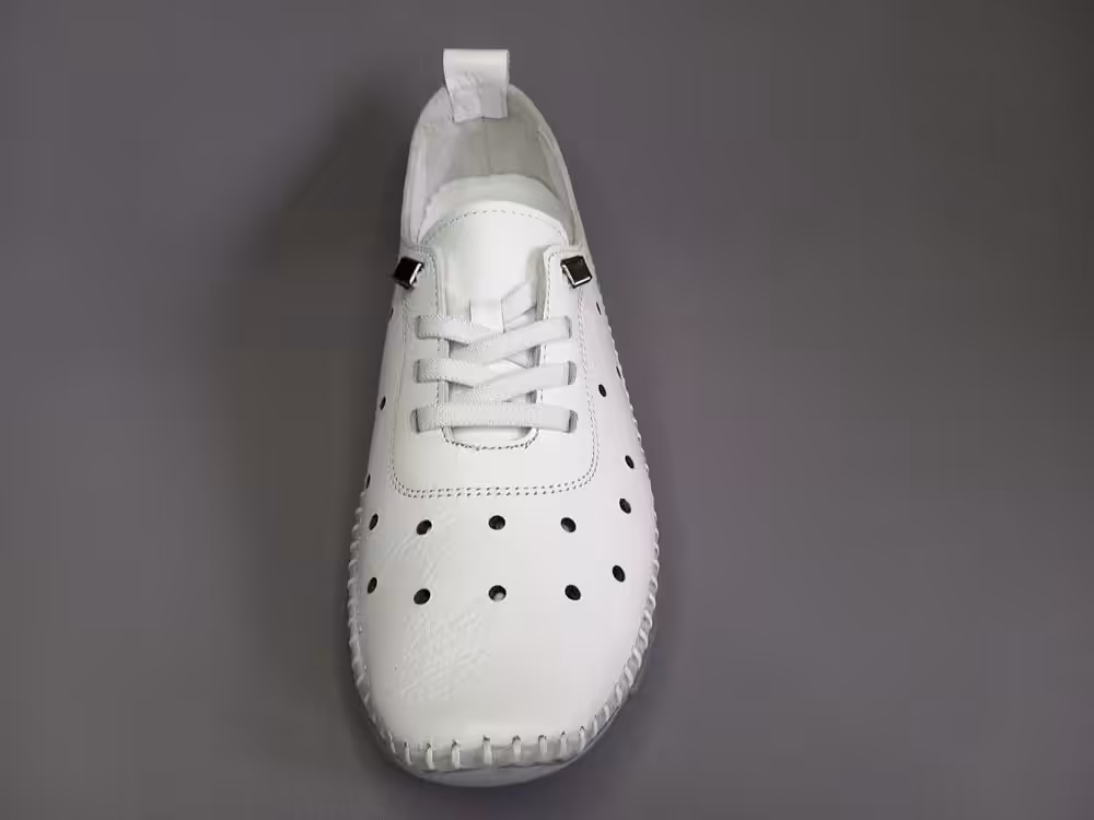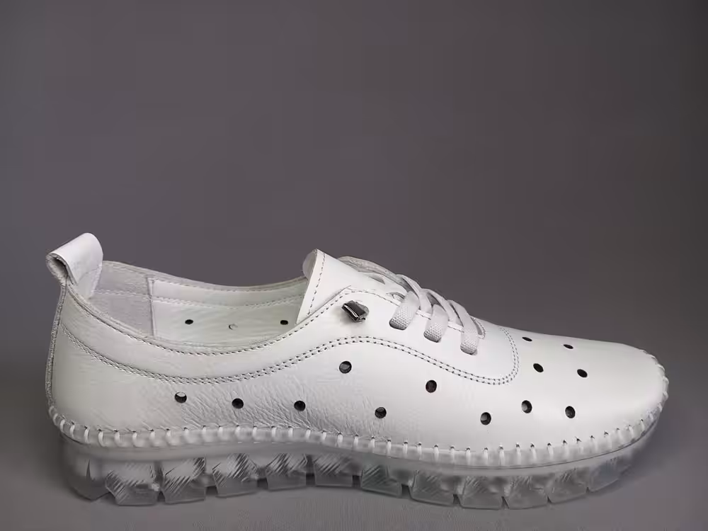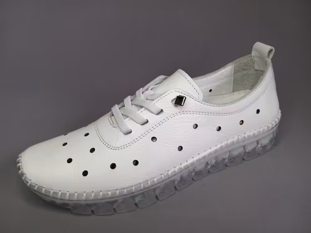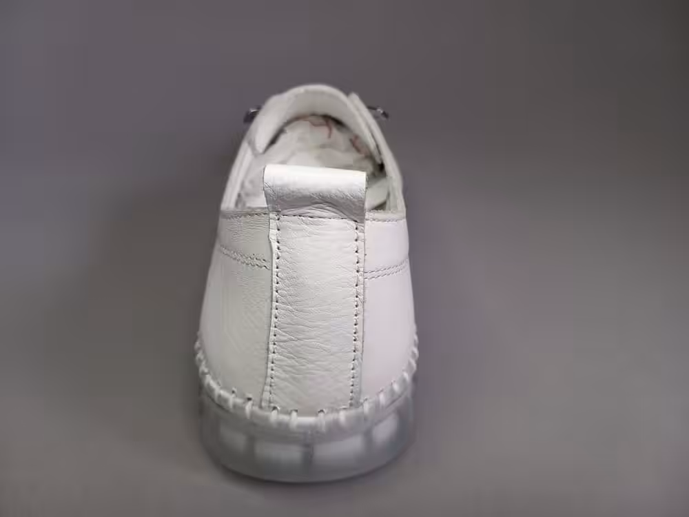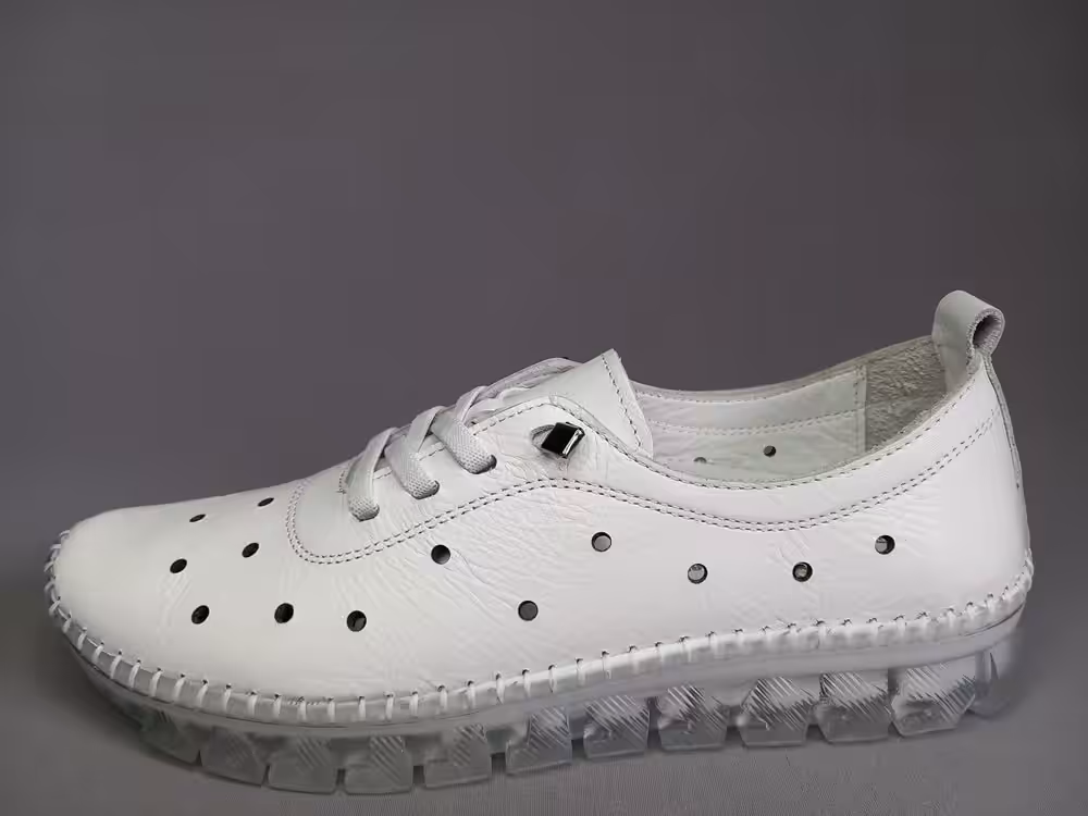 Obuwie zostało wykonane z wysokiej jakości skóry naturalnej licowej w kolorze białym. Tęgość G do G1/2 będzie odpowiednia na stopy standardowe i delikatnie szersze. Cholewka pozbawiona zbędnych szyć dlatego będzie odpowiednia na stopy z haluksami, palcami młotkowatymi. Podeszwa gumowa amortyzuje i chroni przed nierównościami podłoża. Wkładki piankowe z wierzchnią warstwą skóry, można je wyjąć i zastąpić swoimi indywidualnymi wkładkami ortopedycznymi. Wnętrze również wykonane ze skóry naturalnej, przez co stopy lepiej oddychają. Sprawdzą się na wyjazdy, do pracy lub na spacery. Pasują do spodni, dresu lub letniej sukienki. Praktyczny i uniwersalny model zawsze warto mieć w swojej szafie. Miękka pięta bez usztywnień nie powoduje otarć i urazów. Zapraszamy do sprawdzenia całej naszej oferty i wybrania idealnej pary dla siebie. Regularne czyszczenie i dbanie o buty przedłuża ich ładny wygląd przez co możemy cieszyć się nimi przez kilka sezonów. Model dostępny w rozmiarach od 36 do 41.