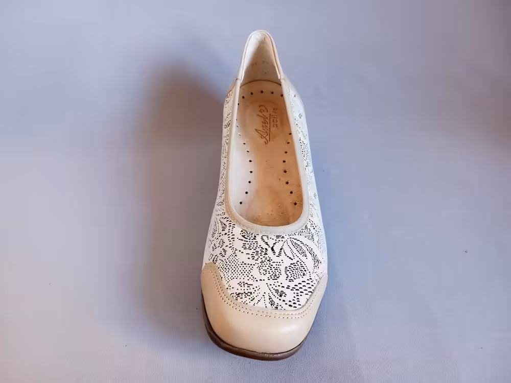 Półbuty na koturnie Axel 1753 dedykowane na stopy z haluksami i palcami młotkowatymi dzięki elastycznej wstawce materiału strecz. Kolor beżowy klasyczny i ponadczasowy. Delikatny klinik stabilny. Model sprawdzi się do wielu stylizacji i zadowoli wymagające panie. Pasują do spodni lub dzianinowej sukienki. Wzór dostępny w rozmiarach od 36 do 41. W naszej ofercie dużo modeli również do numeru 43.