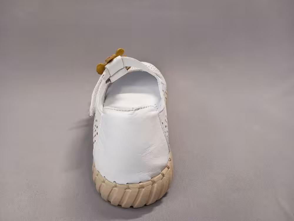 Buty wykonane z naturalnej skóry licowej w białym kolorze. Wycięcia cholewki poprawiają wymianę powietrza wewnątrz przez co stopy mniej się pocą. Tęgość G do G1/2 standardowa ale sprawdzi się na nieco szerszą stopę również. Pasek zapinany na rzep dzięki niemu łatwiej ubrać buty i dopasować je do własnych preferencji. Podeszwa wykonana z tworzywa wysokiej jakości, lekka i elastyczna chroniąca przed mikrourazami. Wkładki miękkie piankowe z wierzchnią warstwą skóry, odciążą zmęczone stopy i podnoszą komfort użytkowania. Pięty bez usztywnień nie będą powodowały otarć i dyskomfortu podczas chodzenia. Łatwe w utrzymaniu czystości wystarczy pianka i biała pasta. Sprawdź całą kolekcję od marki Loretta Vitale i wybierz idealną parę dla siebie.
