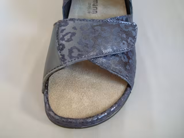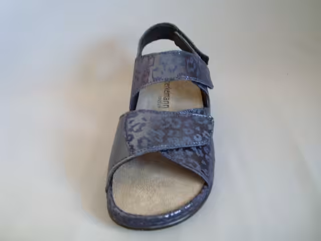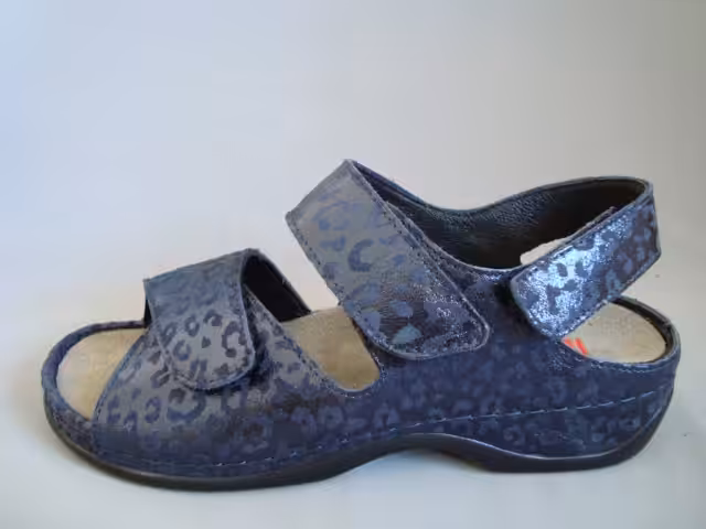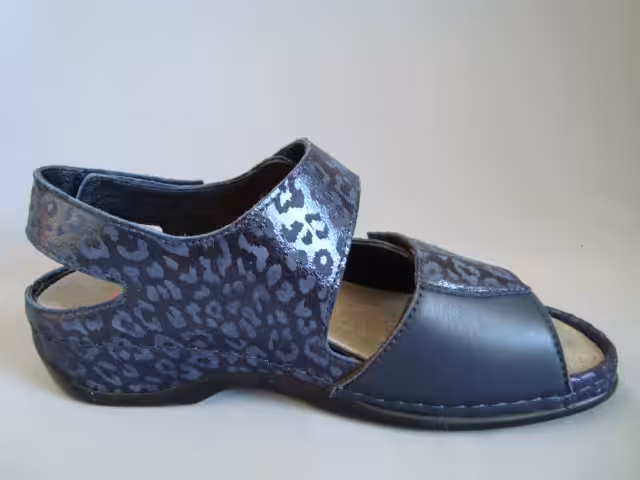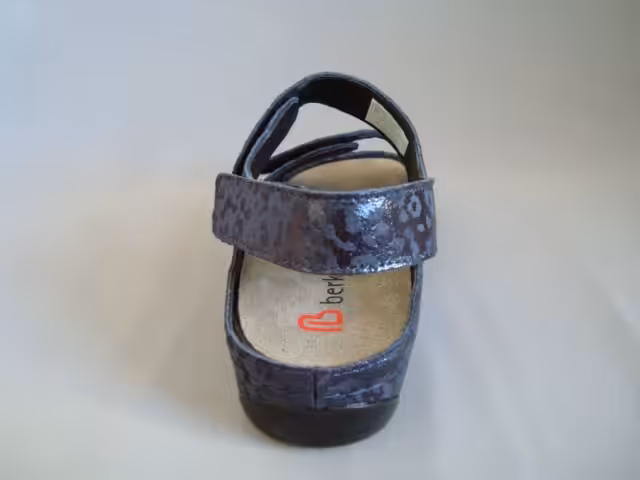 Sandały marki Berkemann model Rina 01040 533 w kolorze granatowym. Obuwie zostało wykonane z najwyższej jakości skóry naturalnej nubukowej nabłyszczanej z elastyczną wstawką w okolicy haluksów. Regulacja w trzech miejscach pozwala na idealne dopasowanie do stopy. Tęgość H sprawdzi się dla osób z tęższymi stopami. Wkładki profilowane z możliwością wyjęcia wymiany na nowe które można również zakupić w naszym sklepie, lub zastosowania swoich indywidualnych wkładek ortopedycznych robionych u ortopedy. Model Rina dobrze sprawdzi się do codziennego użytkowania, jak i na wyjazdy spacery i wycieczki. Wygodne obuwie damskie które pasuje do wielu stylizacji. Prosta klasyczna konstrukcja obuwia zadowoli wymagające klientki. Podeszwa grubsza amortyzuje i chroni przed mikro urazami, gumowe elementy stabilizują i są antypoślizgowe. Profilowane wyjmowane wkładki, które pozwalają na dopasowanie swoich indywidualnych wkładek ortopedycznych. Elastyczna wstawka w okolicach haluksa, dopasowuje się do kształtu i nie uciska. Paski regulowane na przylepiec, dlatego buty odpowiadają na szerokie stopy w tęgość H. Stabilna grubsza podeszwa, antypoślizgowa, klinik pod piętą ok.3,5cm. Model wykonany z najwyższej jakości skór naturalnych, zwierzęcy print. Berkemann to marka z historią która na pierwszym miejscu stawia jakość, wygodę i ponadczasowość. Funkcjonalne kroje, ciekawe klasyczne wzornictwo dostosowane aby korzystać z nich zarówno w domu, pracy lub do codziennego użytkowania sprawdzą się do wielu stylizacji dla kobiet ceniących komfort  i jakość. Wybierając obuwie marki Berkemann możemy być pewni, że posłuży nam na kilka sezonów.