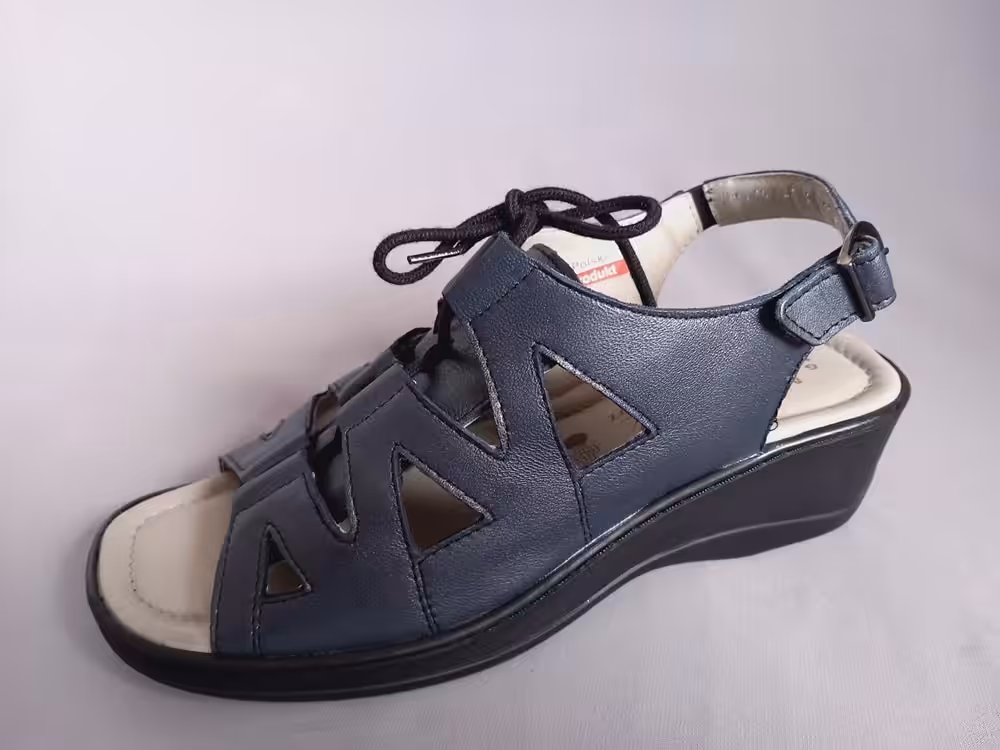 Sandały zdrowotne Axel 2479 dostępne w dwóch kolorach beżowym i metalicznym granacie. Wykonane ze miękkiej skóry naturalnej, która ładnie i szybko dopasuje się do kształtu stopy. Model na delikatnym stabilnym koturnie. Szerokie cholewki z możliwością regulacji są dużym atutem tego wzoru. W łatwy i szybki sposób jesteśmy wstanie dopasować tęgość z H do K lub więcej. Sprawdzą się do wielu letnich stylizacji.