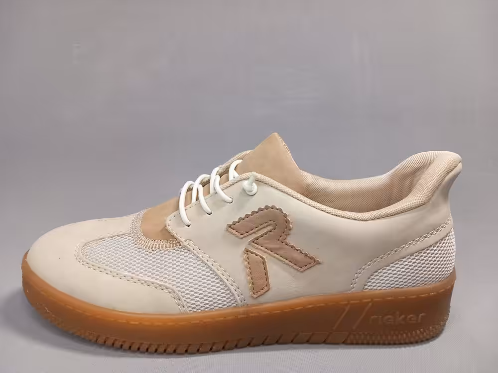 Sneakersy damskie Rieker M5551-62 wsuwane nawet bez użycia łyżki do butów. Jest to ciekawa propozycja na nadchodzący sezon, uniwersalny beżowy kolor sprawdzi się do wielu stylizacji. Miękki środek bardzo komfortowy, podeszwa elastyczna chroniąca przed mikrourazami. Ten wzór będzie również dobrym wyborem na wycieczki, spacery lub do codziennego użytkowania.