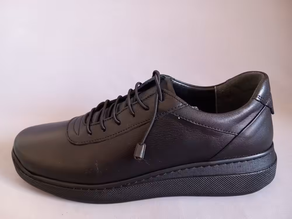 Obuwie wykonane z naturalnej skóry licowej gładkiej w kolorze czarnym. Miękka wkładka piankowa z wierzchnią warstwą skóry, odciąży zmęczone stopy. Podeszwa grubsza, amortyzuje i chroni przed mikrourazami. Wykonana z wysokiej jakości tworzywa. Wiązanie to elastyczne gumki które dopasują się do wysokości podbicia i ułatwiają zakładanie. Tęgość G do G1/2 sprawdzą się na stopy standardowe o normalnej budowie. Model odpowiedni na stopy z haluksami, palce młotkowate, i wrażliwe stopy. Obuwie warto regularnie czyścić i o nie dbać wtedy będzie służyło nam bardzo długo. Skórę licową naturalną można pastować tradycyjną pastą bezbarwną lub czarną. Sprawdzą się na wyjazdy, spacery lub do pracy. Codzienna aktywność w tych butach na pewno będzie przyjemna.